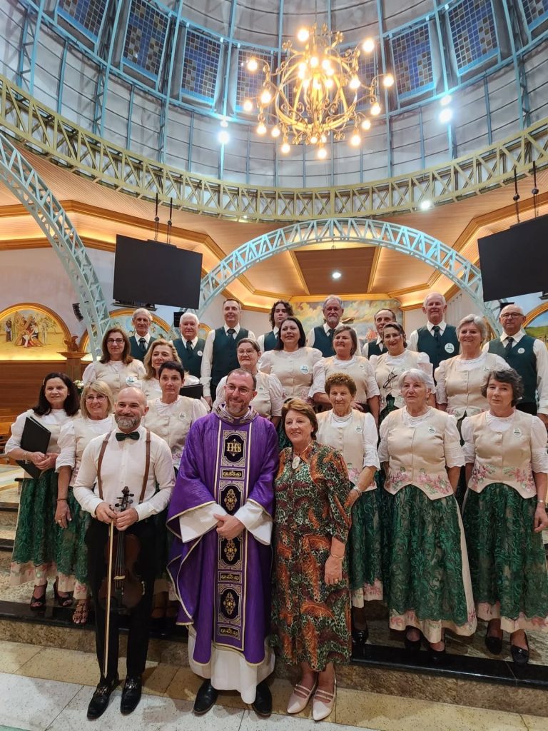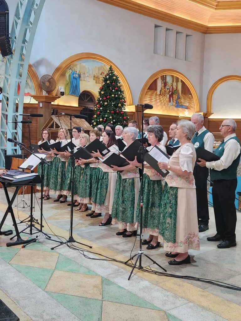Em 29/11/2025, às 19h, o Coral Giuseppe Verdì, sob a regência de Eduardo Cunha, animou a celebração da Missa do 1º Domingo do Advento, presidida pelo Reitor, Pe. Joel Sávio, do Santuário Nossa Senhora de Caravaggio, Município de Nova Veneza (SC).