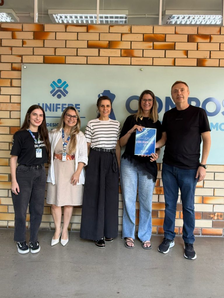 No início desta tarde, o presidente do Coral Giuseppe Verdì, Fábio Maestri Bagio, e o regente, Eduardo Cunha, estiveram na UNIFEBE recebendo do COMPOSÉ – Escritório de Moda e Vestuário do Curso de Design de Moda, o book de coleção do trabalho de “Criação de Figurino do Coral Giuseppe Verdì”, que foi apresentado pelas alunas Ana Beatriz da Silva (Jay), Maria Eduarda Debatin e Maria Eduarda Caviquioli, com orientação das professoras Gabriela Lenzi e Thaissa Schneider, com assistência de Laboratório de Daniele Silva.