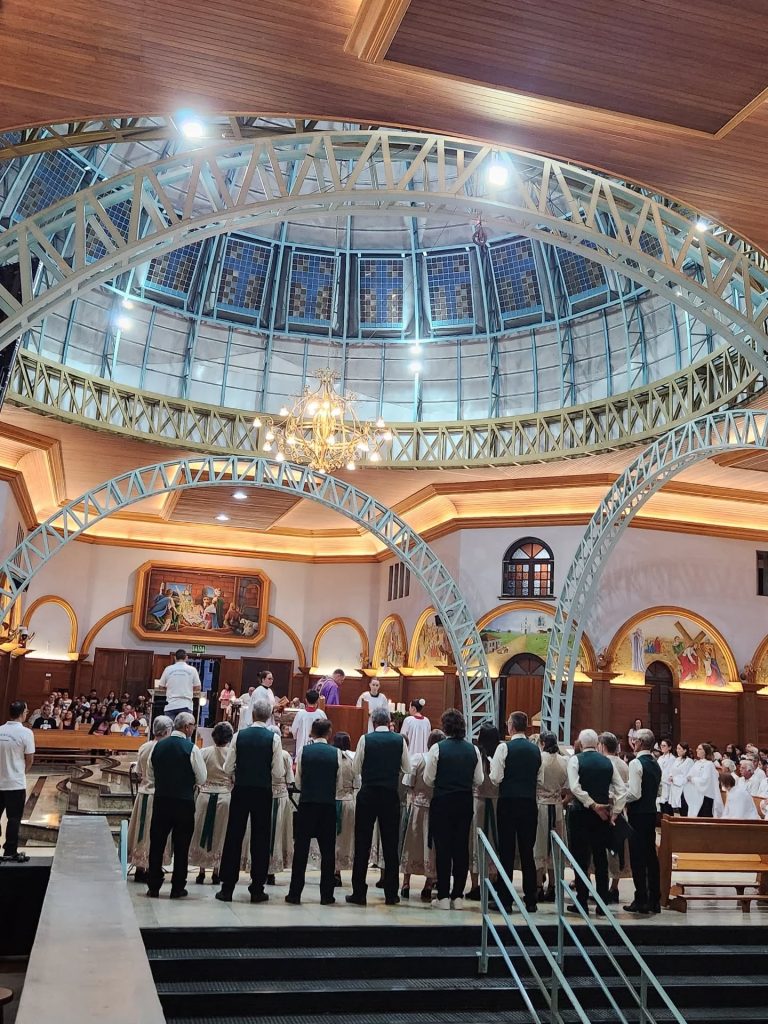 Il 29/11/2025, alle ore 19, il Coro Giuseppe Verdì, diretto da Eduardo Cunha, ha animato la celebrazione della Messa della prima domenica d’Avvento, presieduta dal Rettore, Padre Joel Savio, del Santuario di Nostra Signora del Caravaggio, Comune di Nova Veneza (SC).